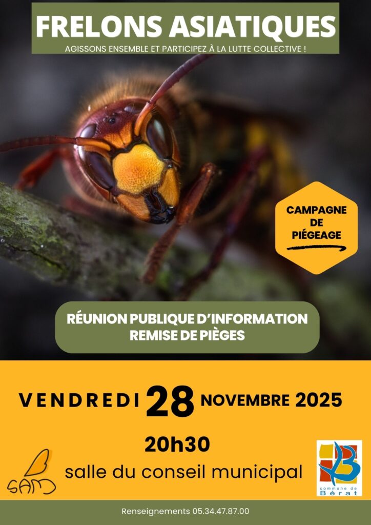 Nous vous convions à une réunion d’information de piégeage des frelons le vendredi 28 novembre à 20h30, salle du conseil municipal.